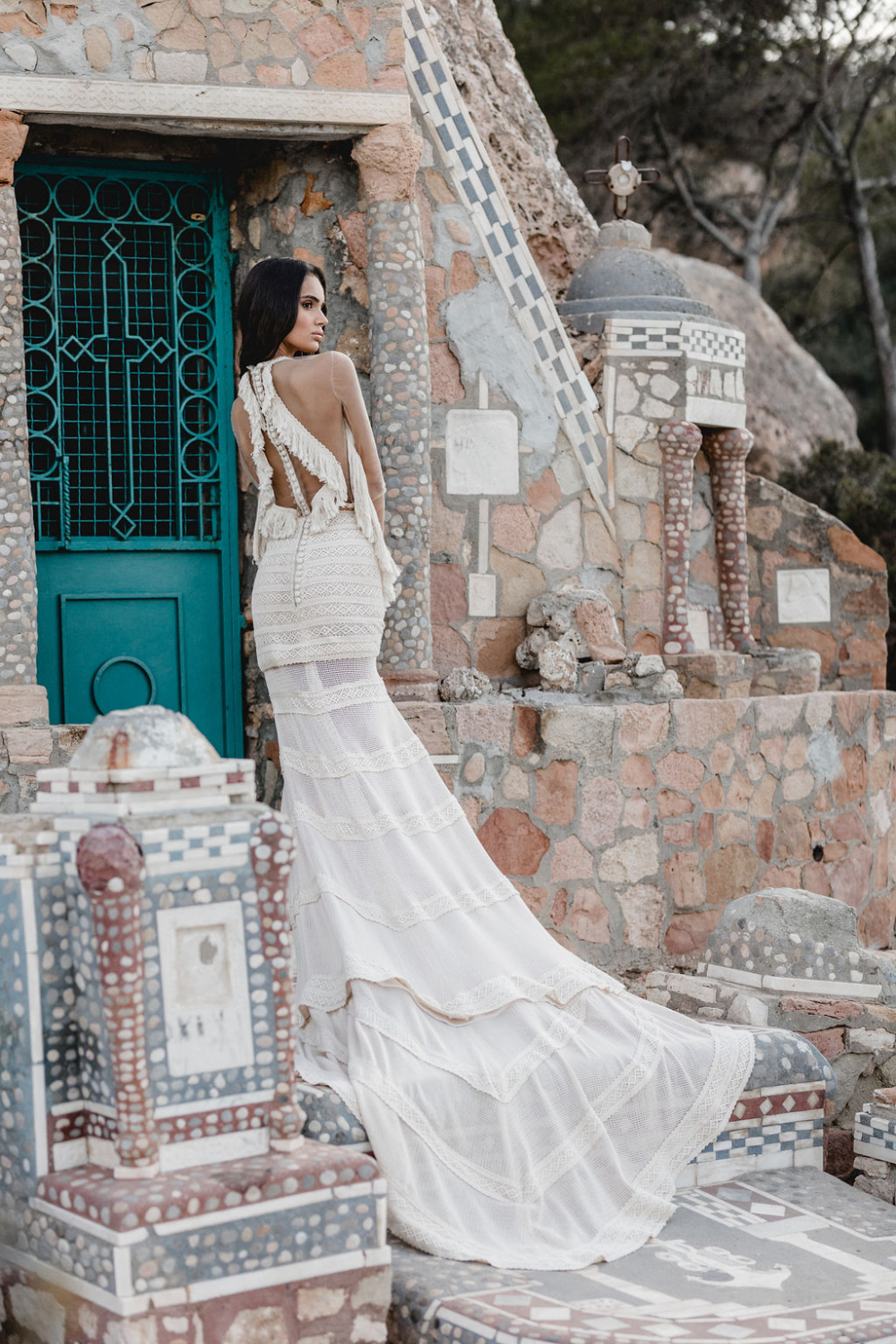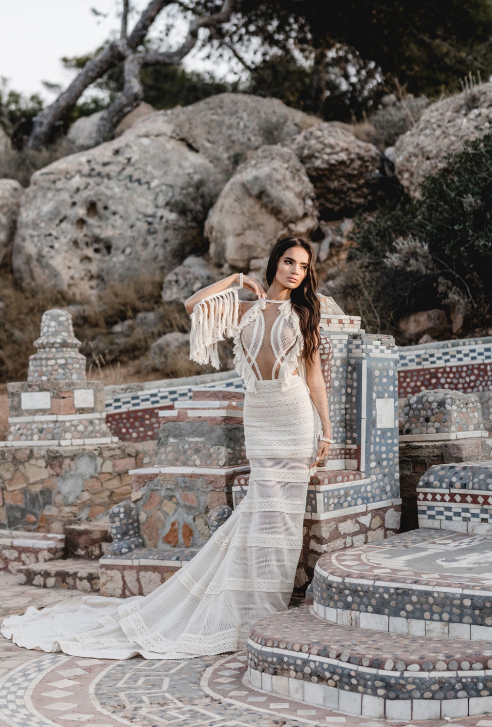 Boho fringe wedding dresses by Atelier Zolotas are ideal for destination weddings around the world. They are light yet structured, bold yet refined, and they photograph beautifully in natural light. Whether a ceremony unfolds by the sea, in a vineyard or on a city rooftop, the movement of the fringe and the texture of the lace create an entire summer mood.