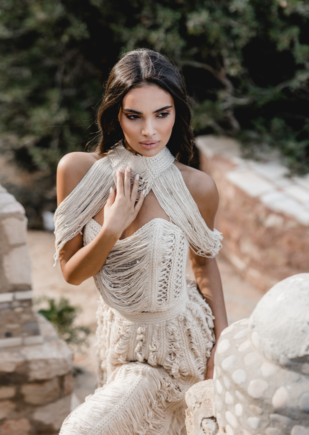 Behind this campaign is the eye and hand of VG Zolotas. His work is διαπνέεται από ελληνικές τεχνοτροπίες, with crochet inspired embroideries and traditional techniques translated into modern bridal couture.