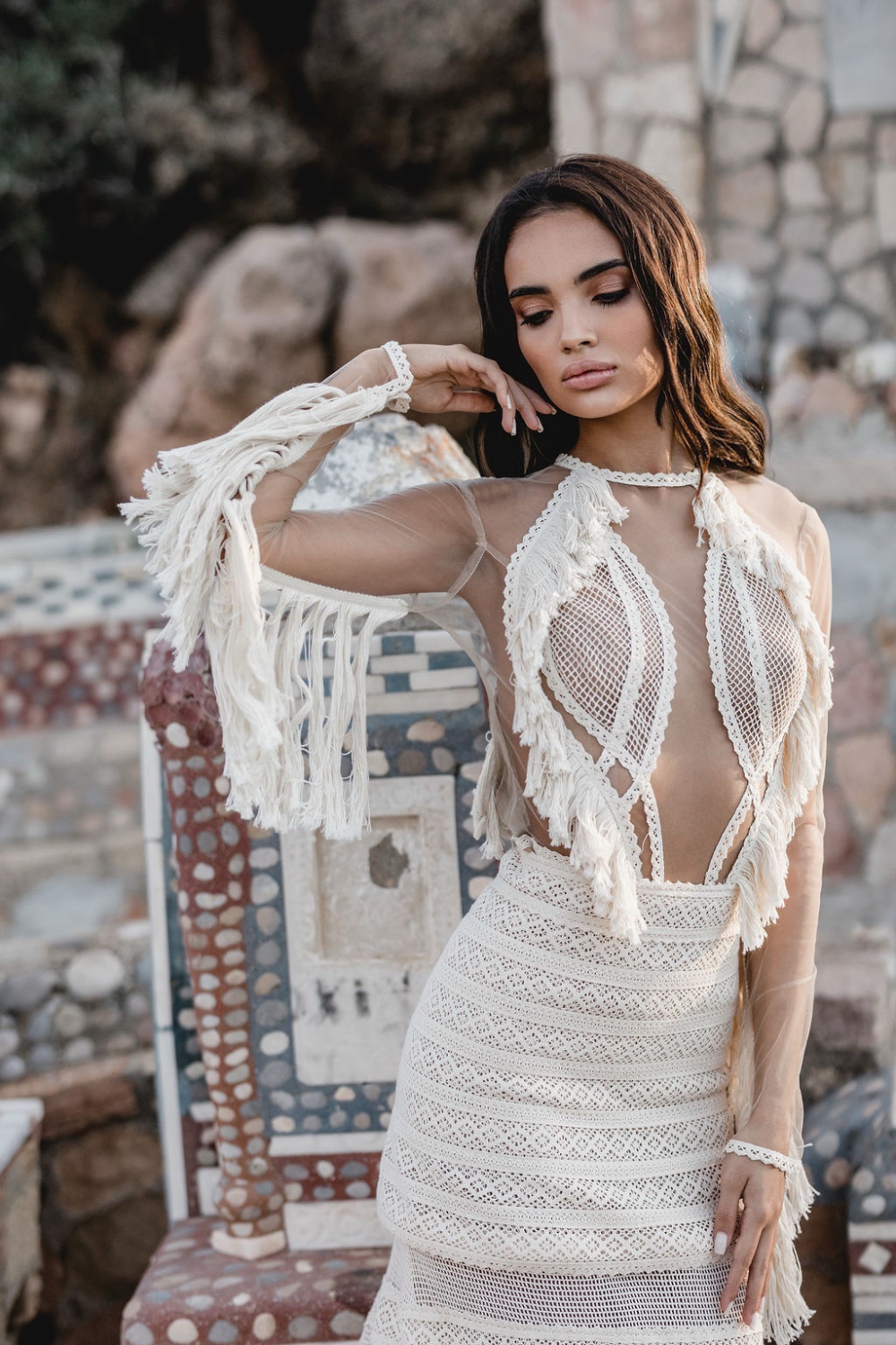 In this campaign, boho fringe wedding dresses become the language through which that philosophy is expressed. Extraordinary couture designed by VG Zolotas, an entire summer mood, and a clear promise to brides everywhere: your dress can be as original as you are.