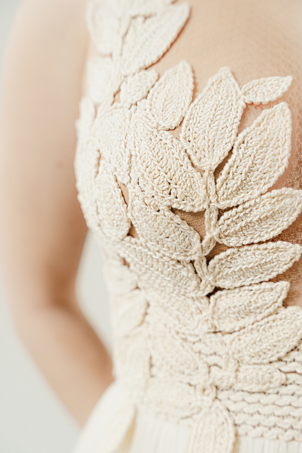 - With hand-knitted crochet embroidery