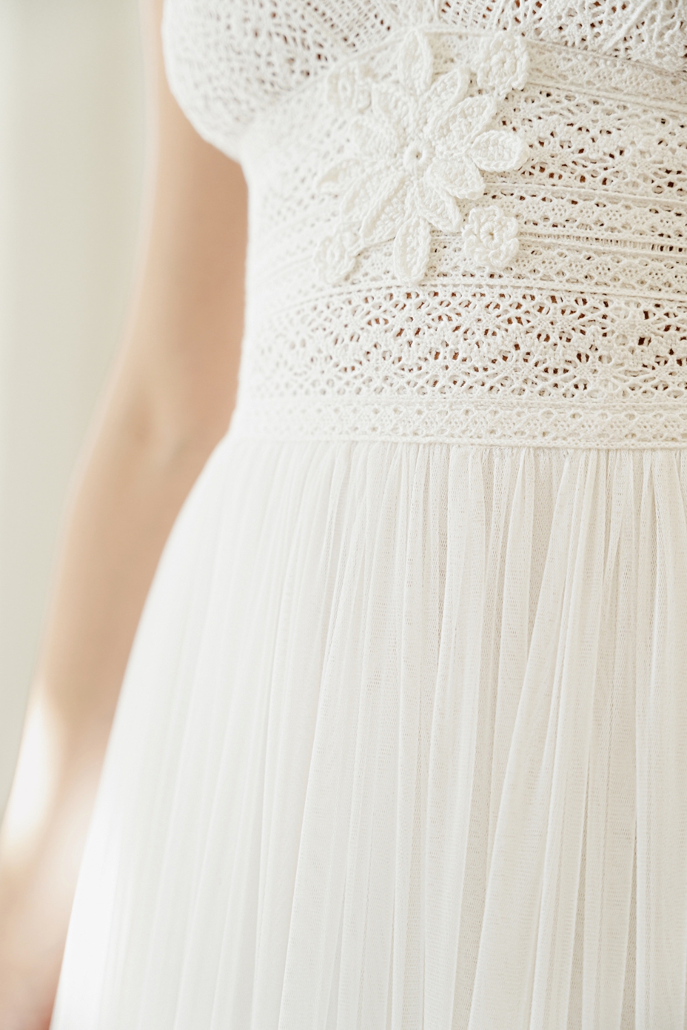 - Embellished with handmade crochet embroidery at the front